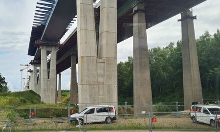 Am Nachmittag stand ein echtes Highlight auf dem Programm: die Besichtigung der Baustelle der Rader Hochbrücke. Hier konnten die Teilnehmer hautnah erleben, wie an einem der bedeutendsten Infrastrukturprojekte der Region gearbeitet wird.