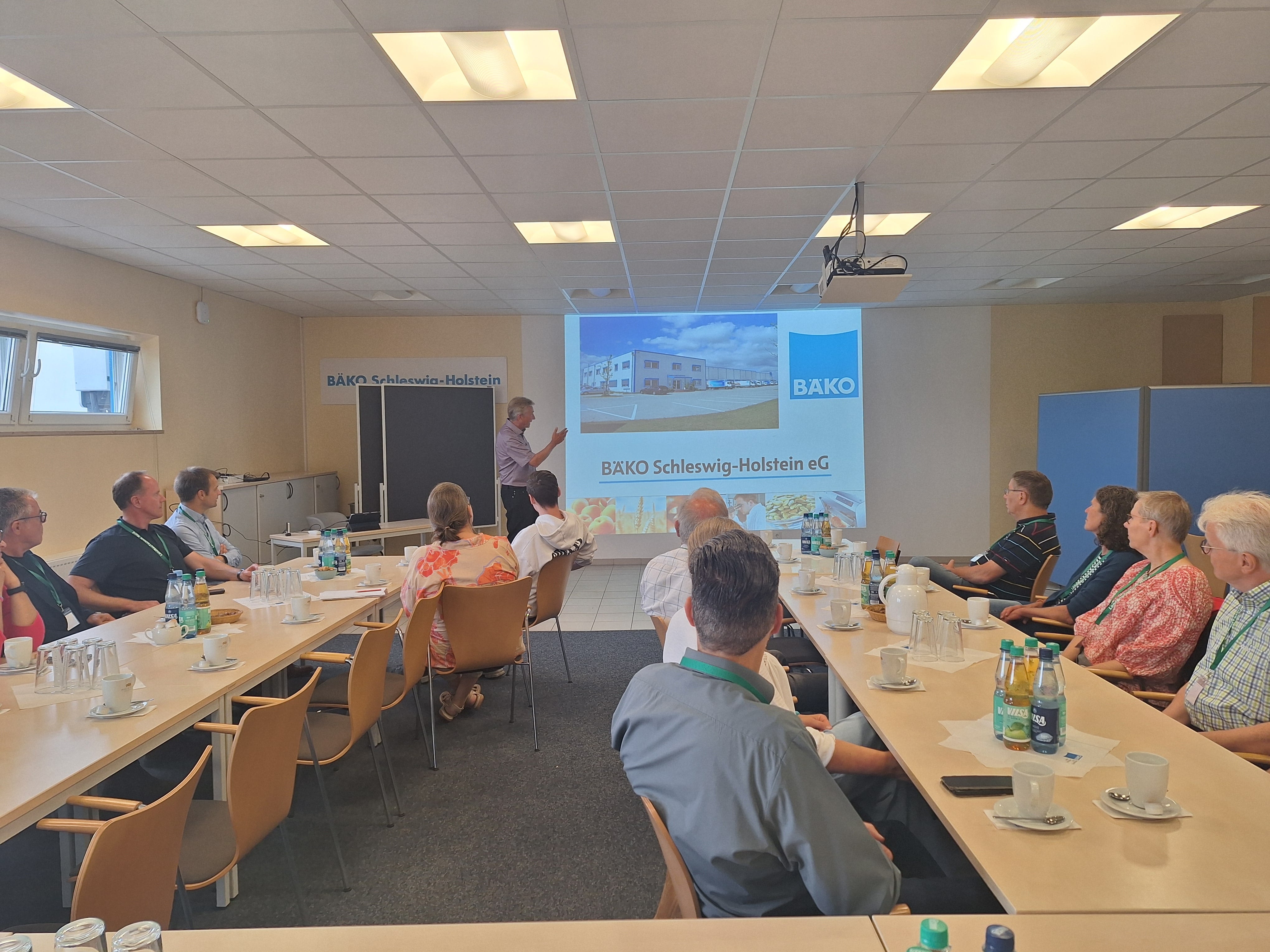 Nach einem gemeinsamen Frühstück startete das abwechslungsreiche Tagesprogramm. Erste Station war die Firma BÄKO in Kropp, wo die Gruppe spannende Einblicke in den Betrieb bekam. Anschließend ging es weiter nach Gut Schirnau in Bünsdorf. Dort erwarteten die Gäste eine Hof- und Feldbesichtigung, ein Fachvortrag zum Kartoffelanbau sowie ein kleiner Imbiss mit Fingerfood und Getränken – die perfekte Mischung aus Information und Genuss.